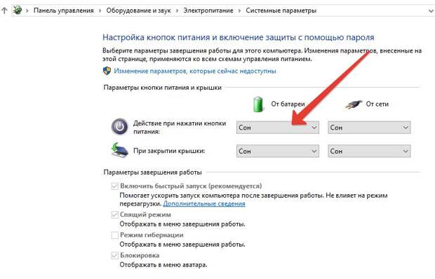 Для владельцев таких моделей сообщаем, где выключается эта кнопка: Панель управления — Оборудование и звук — Электропитание.