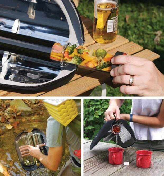 После чрезвычайно удачного старта в 2013-ом компания GoSun доработала свое изделие и теперь запускает в производство одну из самых дешевых и компактных солнечных печек в мире – GoSun Go. Принцип ее работы прост – параболические зеркала собирают солнечный свет и концентрируют его на центральном модуле, нагревая его.