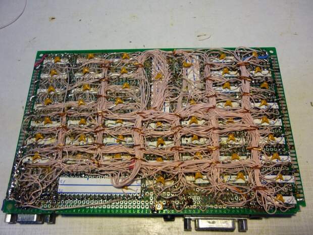 Уделяя пару-тройку часиков в день за две с половиной недели все таки собрал. Не терпелось сразу его подключить. И после включения я увидел белый экран, что же уже неплохо подумал я. После перепроверки всей платы, убрав пару косяков ситуация лучше не стала. Я долго не мог понять в чем дело но потом узнал что не стоит мешать КМОП и ТТЛ микросхемы. Да, я тот еще радиолюбитель. Пришлось опять заказывать детали и ждать. После замены всех КМОП микросхем на ТТЛ все таки появилась заветная надпись, но изображение плыло.