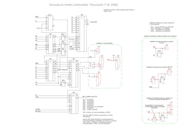 За основу решил взять оригинальную схему Ленинграда с sblive.narod.ru. Ну и добавить кучу доработок, таких как корректировка прорисовки окружности(непонятно как Зонов смог спроектировать компьютер с таким лютым косяком.Выражается в проблемах шрифтов, косяках графики итп), стабилизации кварцевого генератора, стабилизации кадровой и строчной синхронизации, доработка сигнала INT, введение привязки к уровню черного.