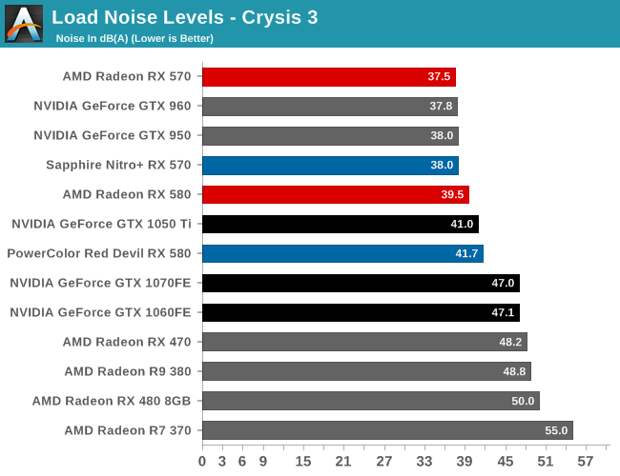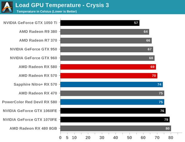 GeForce GTX 1060 отличается от Radeon RX 580 более низким энергопотреблением (264 Вт vs 324 Вт), но при этом сильнее нагревается (76° vs 69°) и шумит (47.1 дБА vs 39.5 дБА):