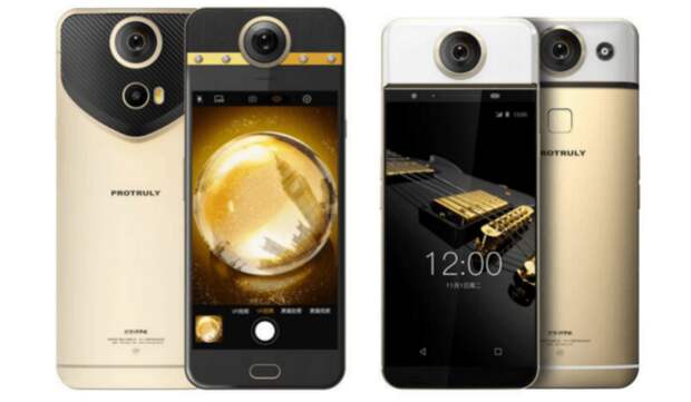 Пользователи привыкли к тому, что камеры с 360-градусным обзором являются шарообразными и телефоны ими не оснащаются. Трудно даже представить, что такая камера может найти себе применение в смартфоне в качестве его интегрированного компонента. Но китайской компании ProTruly удалось создать два несколько громоздких и непривычно выглядящих смартфона и выпустить их в Китае в декабре 2016 года. Эти девайсы рассматриваются в качестве первых в мире смартфонов виртуальной реальности.