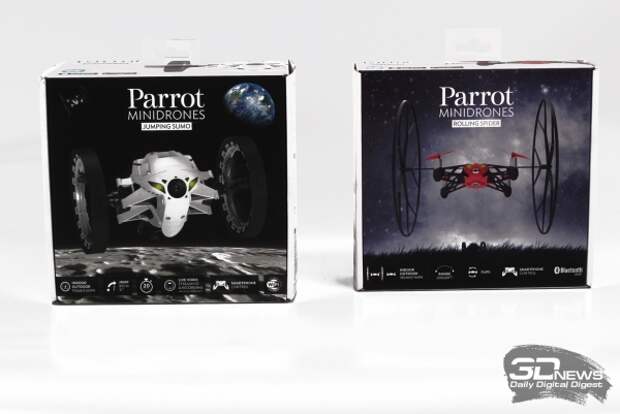 Десять лет назад это казалось невозможным — гражданские люди могут позволить себе купить беспилотник, управлять им, делать с него снимки. Беспилотные летательные аппараты применяются на вооружении армий уже больше сотни лет. Конечно, современные гражданские дроны не используют технологии, которые сейчас стоят на вооружении, но когда управляешь подобным аппаратом, то возникает чувство, что ты проводишь сверхсекретную разведывательную операцию в тылу врага. На последние модели дронов уже устанавливают Full HD-камеры, которые позволяют делать четкие снимки даже с больших расстояний. В некоторых странах даже начали запрещать частные беспилотники — к примеру, в Узбекистане с 1 января 2015 года вступил в силу подобный закон. А мультсериал South Park не так давно посвятил целую серию дронам и их вмешательству в частную жизнь.Ну а пока в России дронов никто не запрещал, мы познакомимся с парочкой маленьких роботов из модельного ряда mini-drone компании Parrot — Sumo Jumper и Rolling Spider. Данные дроны были впервые представлены на CES 2014.
